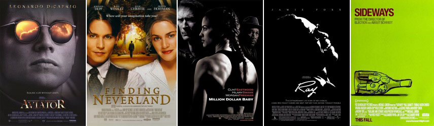 The Aviator can be admired for getting so much material into one movie, and for choosing to focus on the less-publicized period of Hughes’ life, but some felt the film was too long and still tried to cover too much. As for Vera Drake, I always get pissed when Mike Leigh gets screenplay nominations, since his movies are largely improvised. I’m sure there’s more to it than that and I won’t claim to know his exact working method, but it just feels unfair to me.
