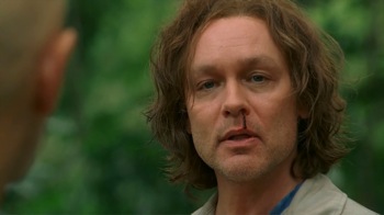 The fourth flashback captures John at the physical rehabilitation facility where he is living after being paralyzed. After a trying workout, an orderly wheels him back to his room. We don’t see his face at first, but the distinct voice registers immediately as he engages Locke in conversation. Soon enough we get a look at him: Matthew Abbadon. He calls Locke’s survival from an eight-story fall a miracle, and then suggests that Locke go on a walkabout, insisting it will do him good. Locke points out that he’s a cripple, ill-suited to walking about anything. Abbadon tells him, “I went on my walkabout convinced I was one thing, but I came back another. I found out what I was made of; who I was.” Before leaving John, he adds, “When you’re ready Mr. Locke, you’ll listen to what I’m saying. And then, when you and me run into each other again, you’ll owe me one.”
