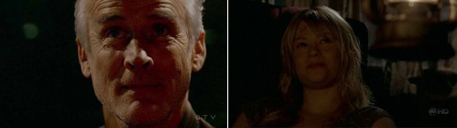 I gotta tell you, the crazier this show gets, the harder these things are to write. There was a lot I wanted to bring up this week – things that dated back to some of the earliest episodes from Season One – but I just didn’t have time to get it all down and pop some of those old episodes into the DVD player to check my facts. So while this is already longer than you can probably bear to endure, it’s much abbreviated from what I’d hoped to assemble. As it is, I won’t tell you how long it’s taken me to write this friggin’ recap – one that is, frankly, not at all up to my personal standards. Anyway, I’ll revisit some of the episode’s most intriguing moments soon.