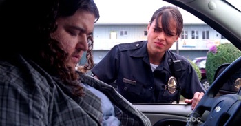 Jumping ahead to 2008, Hurley is driving an unconscious Sayid around, unsure what to do and suspected by the police of killing the men who are in fact Sayid’s victims. Keeping up his recent habit of encountering dead people, he gets pulled over by former L.A. cop Ana Lucia, who tells him to get his head on straight, take Sayid somewhere safe and above all, avoid the police. “Don’t get arrested,” she warns him.