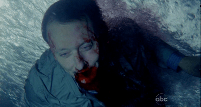 Later, when Caesar shows up with a couple of guys and attempts to keep Locke from taking a boat to the main island, Ben acts as though he’s being forced to go with Locke, playing up the angle of Locke being dangerous. But when Caesar reaches for the shotgun, which he had shown Ben in their earlier conversation, he finds it missing. Ben pulls it out instead, and blasts Caesar in the chest with it. Maybe not as elegant a kill as the one suffered by Caesar’s Roman namesake, but it gets the job done.