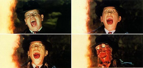 The sequence with Smokey was thick with Indiana Jones references. The smoke billows out of the holes until it fully envelops Ben in a cloud. It was a very Raiders of the Lost Ark moment, with strong echoes of the climactic scene in which the Ark is finally opened. Of course, Ben comes out of looking Smokey in the eye a whole lot better than, say, this guy who looked into the Ark.