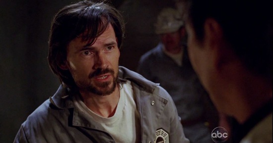 Now I know he’s dealing with a guy who believes time travel is within reach, but Faraday still might have tried easing Chang into the whole “future” thing.” I might have said, “Because where I come from…it’s already happened.” But instead, he skips right ahead to the “f” word. Back above ground and outside the station now, his efforts to convince Chang that he’s serious – even trying to point out that Miles is his son – fail. Miles doesn’t admit the truth when Faraday asks him for backup, and Chang drives off even more pissy than usual. Faraday tells Miles that he’s just trying to make sure Chang does what he’s supposed to do. Which I figure is to follow through with that evacuation order, at least for some of Dharma’s inhabitants.