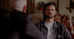 Jumping ahead in time, we finally revisit one of our first meetings with Daniel, in which he watches the news report about the discovery of Oceanic 815 in the Indian Ocean. (Continuity Police – I love that they made no effort at all to match his hair with the original footage, where it’s all kinda slicked back. One moment his hair looks like that, and the next it’s flat and down around his face as we usually see it. Seriously? You couldn’t have attended to that detail?) Maybe the crew is suffering from memory problems, just like Daniel himself. You may remember that when Desmond visited him at Oxford, he was running experiments with his rat Eloise and, over time, exposing himself to large quantities of radiation…without wearing any protective headgear. I assume that is what damaged his memory. Oxford Faraday even says to Desmond that Island Faraday must remember them having this conversation in 1996, but Desmond says no, Island Faraday doesn’t remember it.