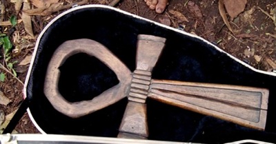 The Japanese guy, who I’m gonna call Mr. Miyagi until we learn his real name, orders Jack and the others to be shot. Why this quick decision to dispose of them? Hurley shouts that Jacob sent them there to help their wounded friend. When asked for proof, Hurley points to the guitar case. Mr. Miyagi opens it and finds a large ankh, which at first I assumed was one of the two held by the statue. But it’s probably not large enough, and it also looks different than the statue’s. What do you think?