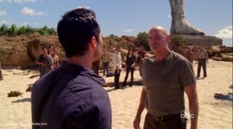 Jack sees Hurley standing away from the group, speaking in Spanish to some invisible presence. Assuming Hurley is conversing with Jacob, Jack strides over and wants to know what he’s saying. Hurley says it’s not Jacob and tells Jack it has nothing to do with him.