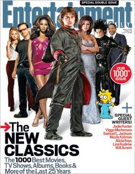 This little project has been a long time in the making, and because I’m always over-explaining things, I’ll begin at the beginning. Four years ago, in late June 2008, Entertainment Weekly published its 1,000th issue. The theme they chose was “The New Classics”: the 1,000 greatest pieces of pop culture from the preceding 25 years. They named their picks for the 100 best movies since 1983, the 100 best TV shows, albums, books and so on. Anyone who reads Entertainment Weekly, or looks at EW.com, knows that they love their lists. We can debate the point of such lists ad nauseam, but let’s face it: they’re fun. From Rolling Stone counting down the 500 greatest albums of all time to the American Film Institute naming the 100 best films ever to Roger Ebert naming his ten best films of the year, we who consume pop culture like these lists. They provoke debate and discussion amongst fans, and they point the unaware toward work they might have overlooked. Even those who decry them probably have a few of their own they’d like to share.