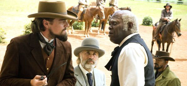 On the whole, I can’t say this is Tarantino at his absolute best. I never felt the kind of tension in my stomach that I got from certain parts of Pulp Fiction, Jackie Brown or Basterds, and there were definitely scenes that should have had that quality. There was also a missed opportunity with Samuel L. Jackson’s character of Candie’s head house slave Stephen, whose sinister and despicable qualities are too often undermined in favor of playing up the humor of his being a foul-mouthed sycophant. Tarantino could have gone further and darker with Stephen, and it would have been great to see Jackson given the opportunity to go there. Still, the movie is a blast, even without shying away from the brutalities of slavery. There’s nothing glib about the savage treatment we see inflicted on the slaves, and the harsher the slavers are, the more satisfying it is to see Django dish out their comeuppance.