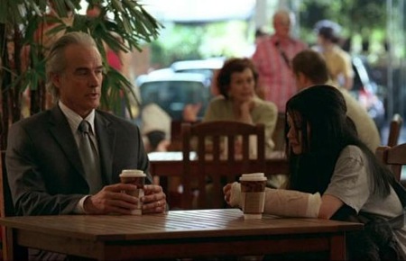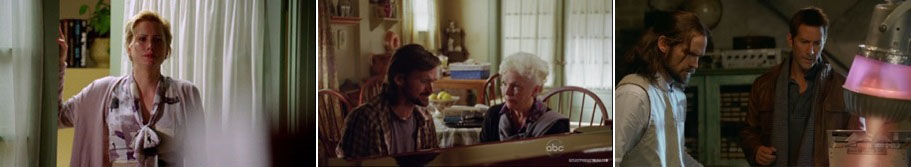 Ben’s afternoon unexpectedly brings him to the home of his favorite student, Alex, and her mother, our old friend Danielle Rousseau. With Ben’s arm in a sling, they offer him a ride which turns into a dinner invitation. I gotta say, it was pretty damn weird to see Rousseau as a member of normal society, wearing a dress, smiling. After dinner, she thanks Ben for the interest he’s taken in Alex and tells him that with Alex’s father having died when she was two, Ben is now the closest thing she has to a father. The compliment chokes Ben up, and he and Rousseau have themselves a little moment. A moment! Ben and Rousseau! I guess his newly-opened window to the island timeline has not yet opened so wide for him to recall getting Alex killed or stealing her from Rousseau.