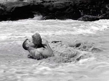 -The episode had a lot of clever dialogue that either harkened back to previously used words and phrases, or else came loaded with foreshadowing. When Jack tells Kate that he took the job from Jacob because he had ruined everything in his life and the island is all he had left, Kate tells him that he didn’t ruin anything. “Nothing is irreversible,” she says – the same thing Jack told Locke about his spinal cord injury when they met at Oceanic’s lost baggage desk in SidewaysLand. As Jack and Man in Locke hover over the edge of the waterfall in the tunnel, waiting for Desmond to do what he goes down to do, Locke tells him that when the island drops to the bottom of the ocean, he’ll realize this had all been a fool’s errand. Jack replies, “Well we’ll just have to see which one of us is right then,” – a line which I am positive was used previously, I think by Man in Locke, but I can’t recall when it happened. There were even visual examples of this, such as the shot that showed Man in Locke and Jack peering over the edge of the waterfall in the tunnel as the camera descends, a shot which evokes the last image of Season One, with the two of them peering down the newly-blown open hatch as the camera retreats from them into the abyss.