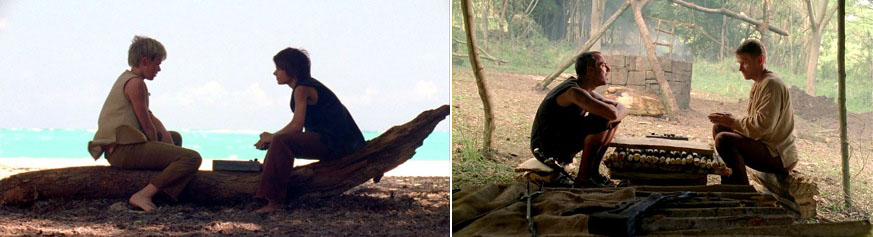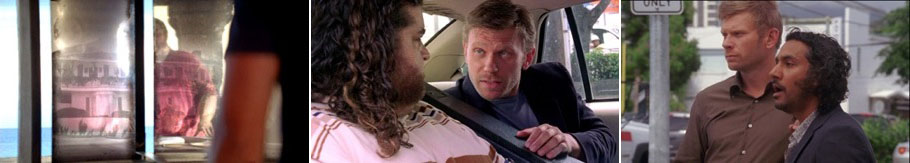 And while they’re all doing that, Hurley and Ben preside over the island. Though I’m not sure I can claim it as an accurate prediction, I think I earn some points for suggesting halfway through the season that Hurley would be the ideal guardian for the island. The scene in which Jack passes on the responsibility to him was one of the episode’s emotional highlights, thanks largely to Jorge Garcia’s vulnerability, a skill that has always kept him from being mere comic relief. I did wonder about the fact that while Jack gives him water from the creek, he does not recite the incantation that Jacob did when passing on guardianship, or that the Woman in White did when anointing Jacob. Does that mean that the water from the creek alone is what gives the island’s guardian his power? Is the incantation just for show – a verbal Ring of the Schwartz? (Spaceballs? Anyone? “Forget the ring! The ring is bupkus! I found it in a Cracker Jack box! The Schwartz is in you, Lone Star! It’s in you!”) Was there any power associated with the island guardians at all? Perhaps Jacob’s long life and special abilities came from someplace else, and Jack – in his brief stint as the protector – had no such gifts. So without the incantation, did Hurley have any special protection to aid him in his…protection? And why do I suddenly feel like I’m writing a condom commercial?