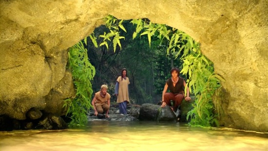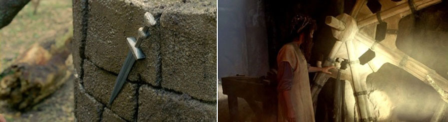 Desmond goes down to the heart of the island – to what the Woman in White called “the source” – and he steps into the pool of water, which immediately begins to flash wildly and bubble up. The effect is much like what Desmond experienced in Widmore’s shack when he was caught between the two solenoids. But despite the pain he expresses, he keeps walking to the center of the pool, where he removes that long stone pillar that acts as a stopper. (One can’t help but think of Jacob’s wine bottle analogy to Richard: “The cork is this island. And it’s the only thing keeping the darkness where it belongs.”) Would anybody else have been able to withstand the energy that Desmond had to move through in order to reach that stone?