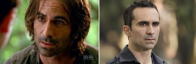 Kate and Sayid, meanwhile, find themselves ambushed by Others – led by Richard Alpert. We haven’t seen most of the Others since Ben and Alex set off for the radio tower at the end of Season Three. They’ve apparently been hiding out in The Temple, whatever that is. Is that where they are now marching Kate and Sayid? For what it might be worth – probably nothing – they’re dressed in their “jungle chic,” which was their most oft-seen costume in the Season Two days.