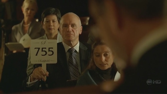 I gotta say, I didn’t see that coming. In “Something Nice Back Home” a few weeks ago, Jack was arguing with Kate and yelled that she wasn’t even related to Aaron, after she referred to him as her son. I commented on the phrasing in my write-up, but thought that the writers were being ironic. I didn’t think he knew about his connection to Claire. I’ve been assuming that for all his success at moving on with his life and selling the Oceanic Lie, the passing off of Aaron as Kate’s daughter was the one part of the fiction that really weakened his resolve; the one part of the tale that he could never get comfortable with. But it appears that his issue all along has been knowing the truth about the baby – a fact which is easier to see now that we’ve learned of this memorial service for Jack’s father, taking place well before Kate’s trial (Aaron is still a small baby at the service, whereas he has grown noticeably by the time the trial ends – he has a head full of blond hair, is sleeping in a bed rather than a crib, and says, “Hi mommy” to Kate).