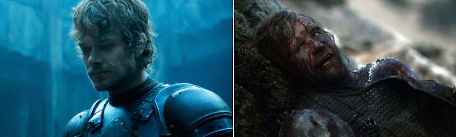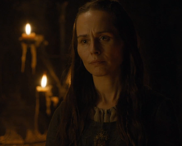 Of these, the one that most fans will probably be least troubled by is Bran’s spiritual guide and fellow warg, Jojen Reed, but I’ll miss him. He didn’t appear until Season Three, and even with two years on the show we didn’t get to spend as much time with him as I would have liked. In my previous GoT post, I wondered whether Bran’s gift would allow him to eventually discover the identity of Jon Snow’s mother — a question that is bound to be important down the line — because I was under the impression that everyone who might know the answer is dead. But someone reminded me that Jojen and Meera’s father, Howland Reed, was a close friend to Ned Stark who was with him during Robert’s rebellion and might well know the truth about Jon’s lineage. Though we haven’t met him yet, Howland Reed is alive and well in the north. With Jojen now gone, Meera lives on (for now, at least) to potentially help connect those dots. (Speaking of Jon’s mystery mother, Kit Harington recently weighed in on the subject, but read at your own risk: this article reveals the prevailing theory, and touches on a few other Snow-related theories that could be considered slightly spoiler-ish.)