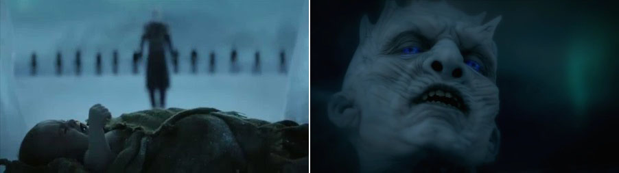 I gather that the show has started to diverge from the books with greater frequency and has even started moving beyond the books, a point which garnered a lot of attention midway through the season when a White Walker took one of Craster’s last sons, carried him into some sort of ritualistic setting, touched an icy fingertip to the baby’s forehead and turned him into a blue-eyed, frost-lipped MiniMe. It was chilling…and not just because of those sub-zero northern temperatures. This scene was called out as a major spoiler, but I think you have to be keeping up with the books to understand why. For those of us just watching the show, I don’t see what’s been spoiled.