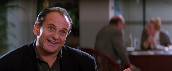 It’s not that I hadn’t been struck by shot composition at that point. I noticed when something looked “cool”, even in movies I hadn’t yet seen. I remember watching clips of The Untouchables on Siskel & Ebert and other movie shows, and noticing interesting shots such as the low angle view of Kevin Costner, towering in the frame with an ornate domed ceiling above him. But Jaws made me aware not just of how shots could look good, but how they could work for the movie. When the Orca departs the harbor to head for sea, the scene is photographed from inside Quint’s workshop, the camera slowly pushing in on a window which itself is framed by a pair of gaping shark jaws, suggesting that our three heroes are heading into the belly of the beast. The first of the film’s major beach scenes, which climaxes in the death of Alex Kintner, also made me aware of filmmaking tools. The way Spielberg focused on a sitting Chief Brody and his view of the activity in the water, using passersby to serve as camera wipes from one shot to the next, or the famous dolly zoom shot depicting Brody’s reaction to the fountain of blood that erupts upon the shark’s seizure of Alex. The Fourth of July beach scene, which also climaxes with a shark attack – this one on a man attempting to assist a group of boys that includes Brody’s son – ends with a shot as simple but effective as Brody looking up in the direction of the now departed shark, and the camera pushing in to suggest the inevitable showdown that will occur in those waters.